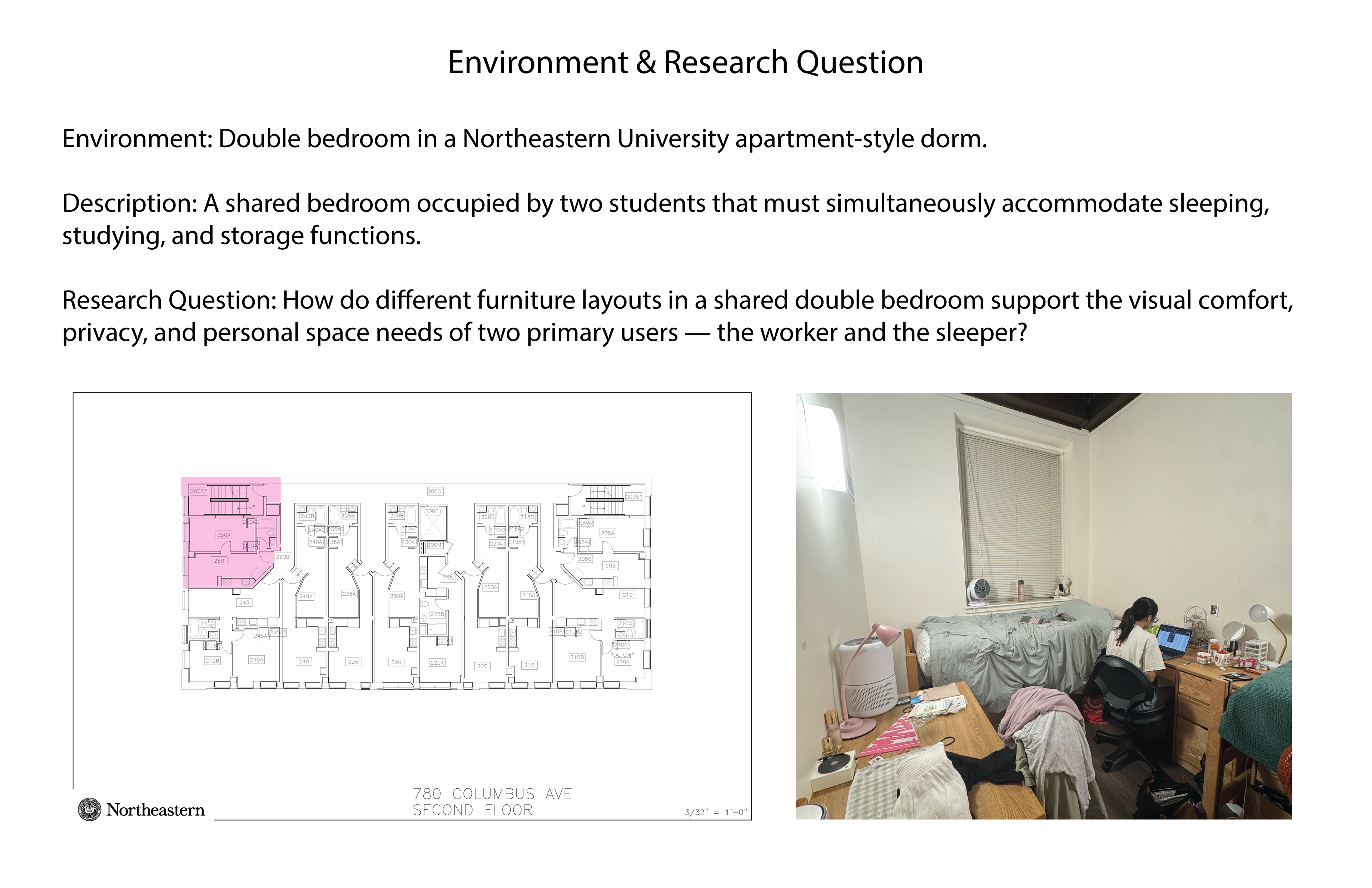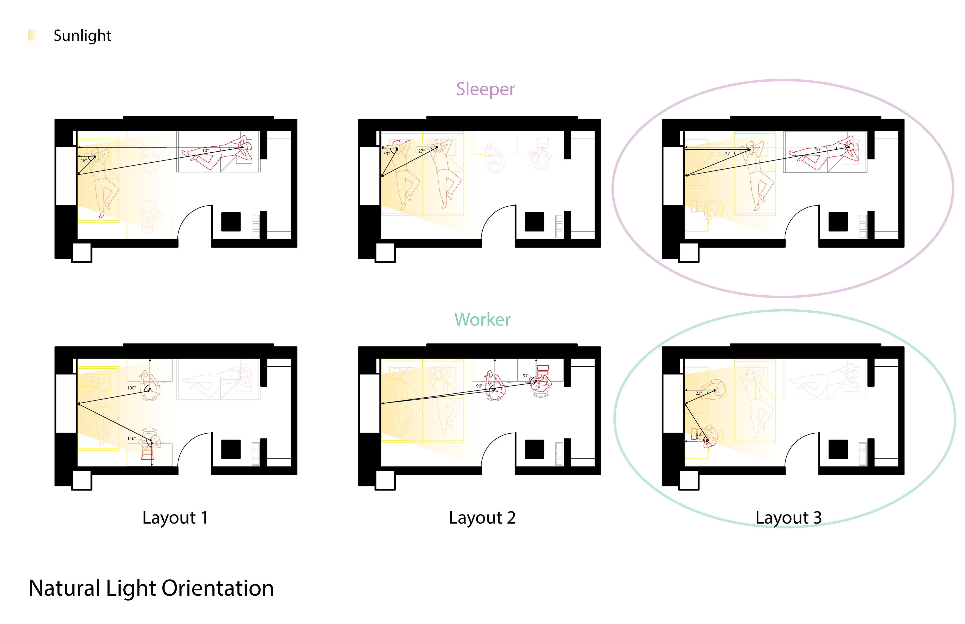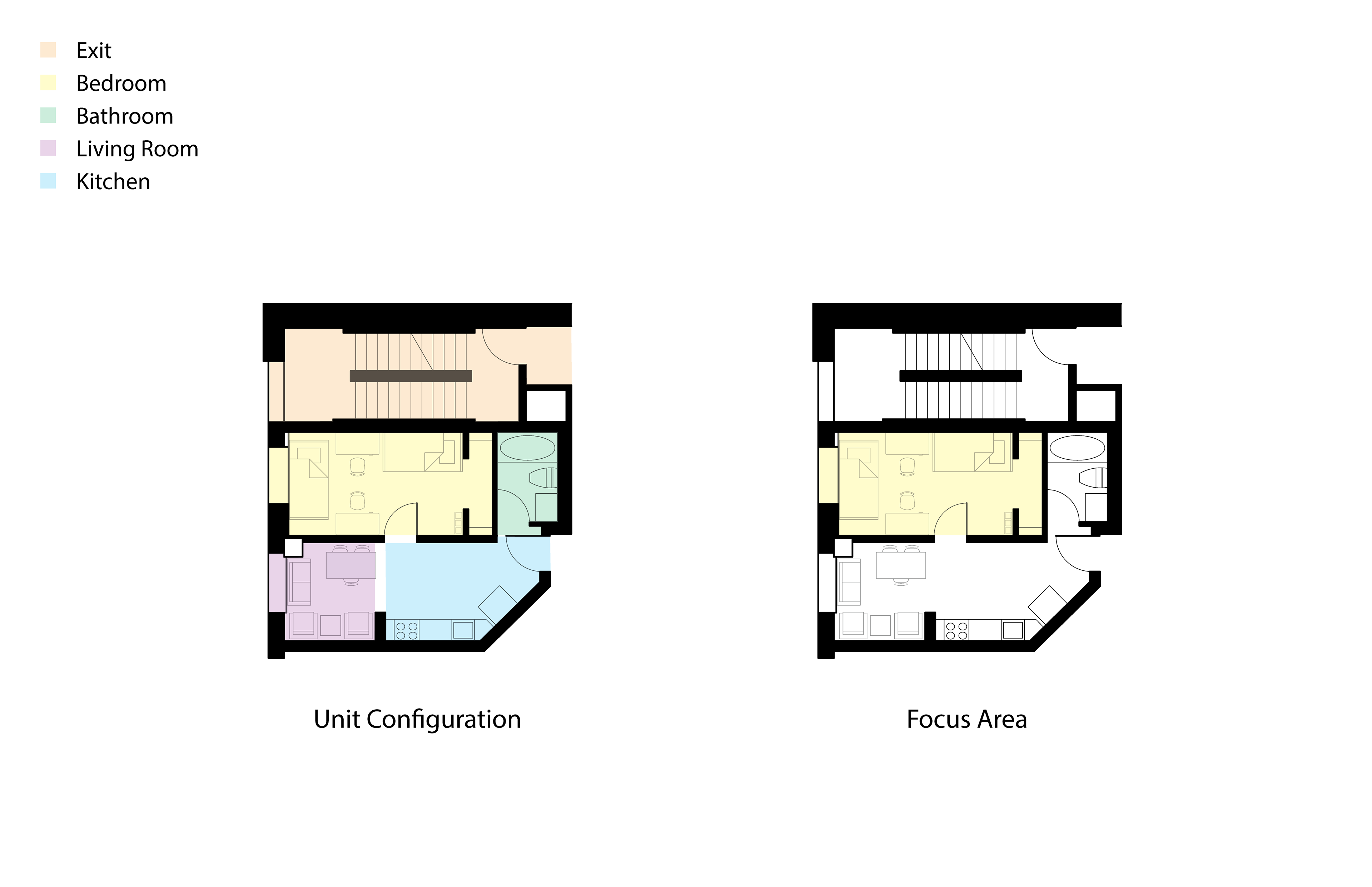 This work examines architectural representation as a tool for analyzing user behavior, spatial needs, and environmental performance through functional scenarios, behavioral mapping, and health-centered evaluation. The projects apply these methods to a public-space pavilion redesign informed by observed use patterns and to a residential layout study comparing accessibility, daylight orientation, and personal space overlap, demonstrating how observation and data translate into clear spatial interventions.